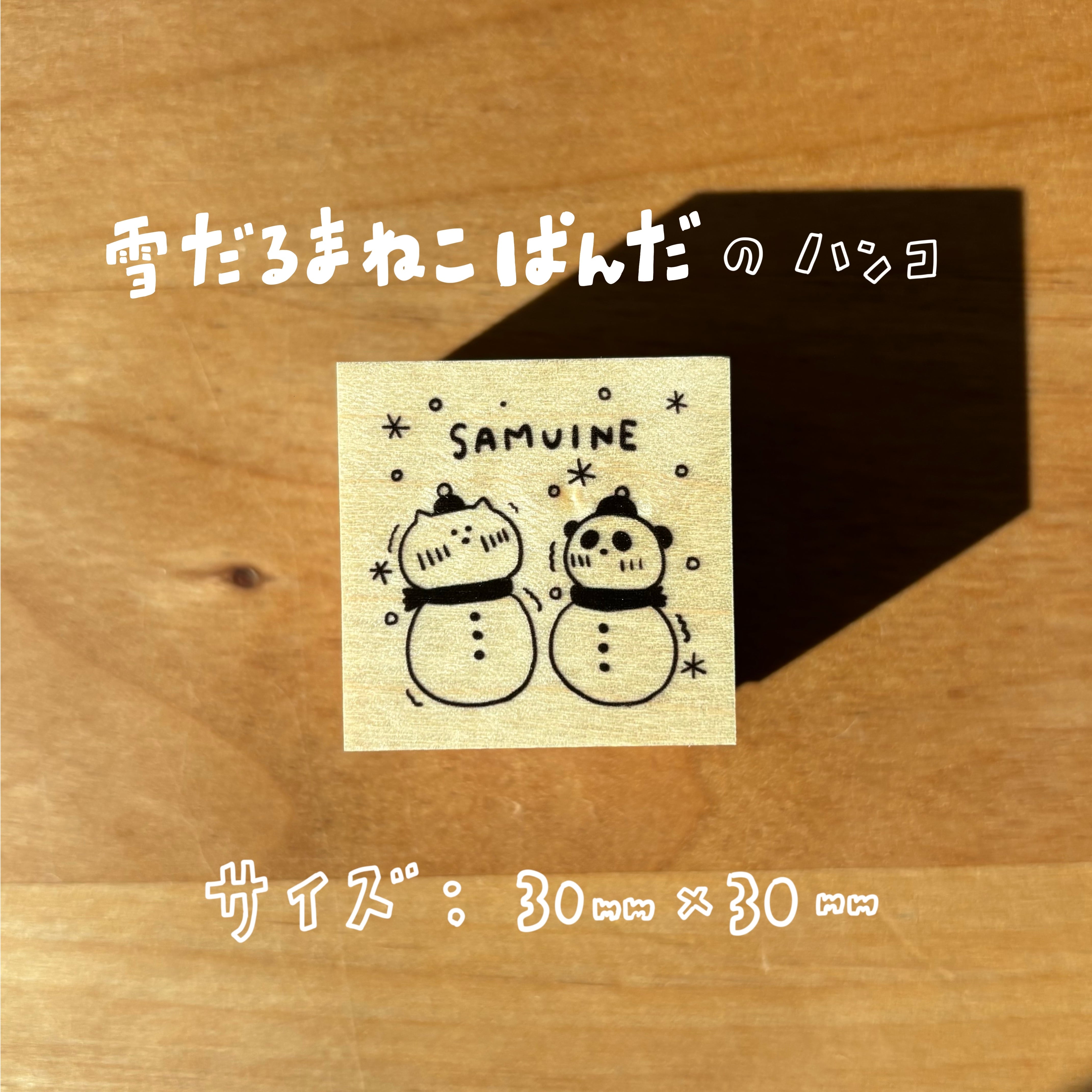 ねことぱんだがまんまるな雪だるまになってしまったハンコです!