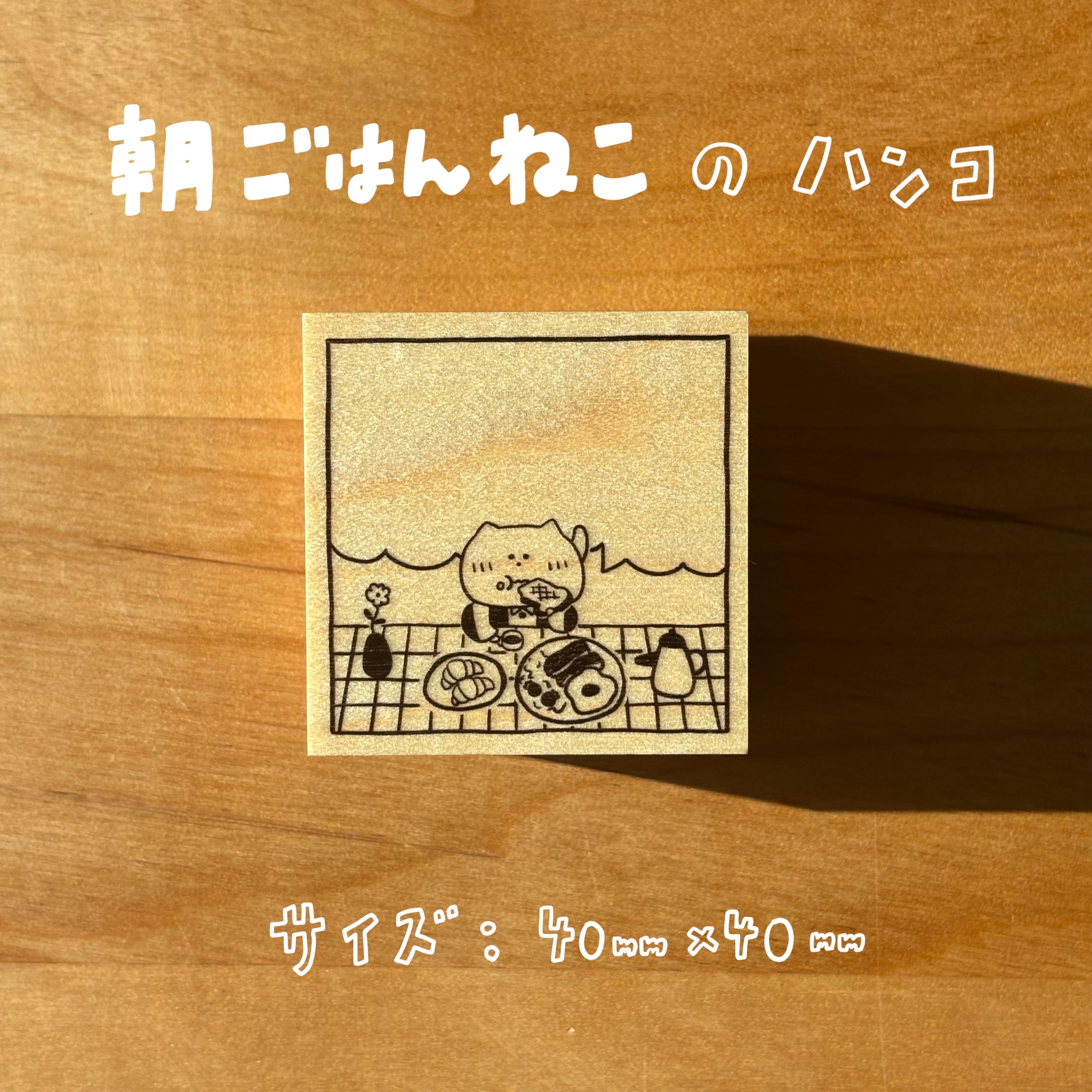 朝ごはんをパジャマで食べるねこをハンコにしました!