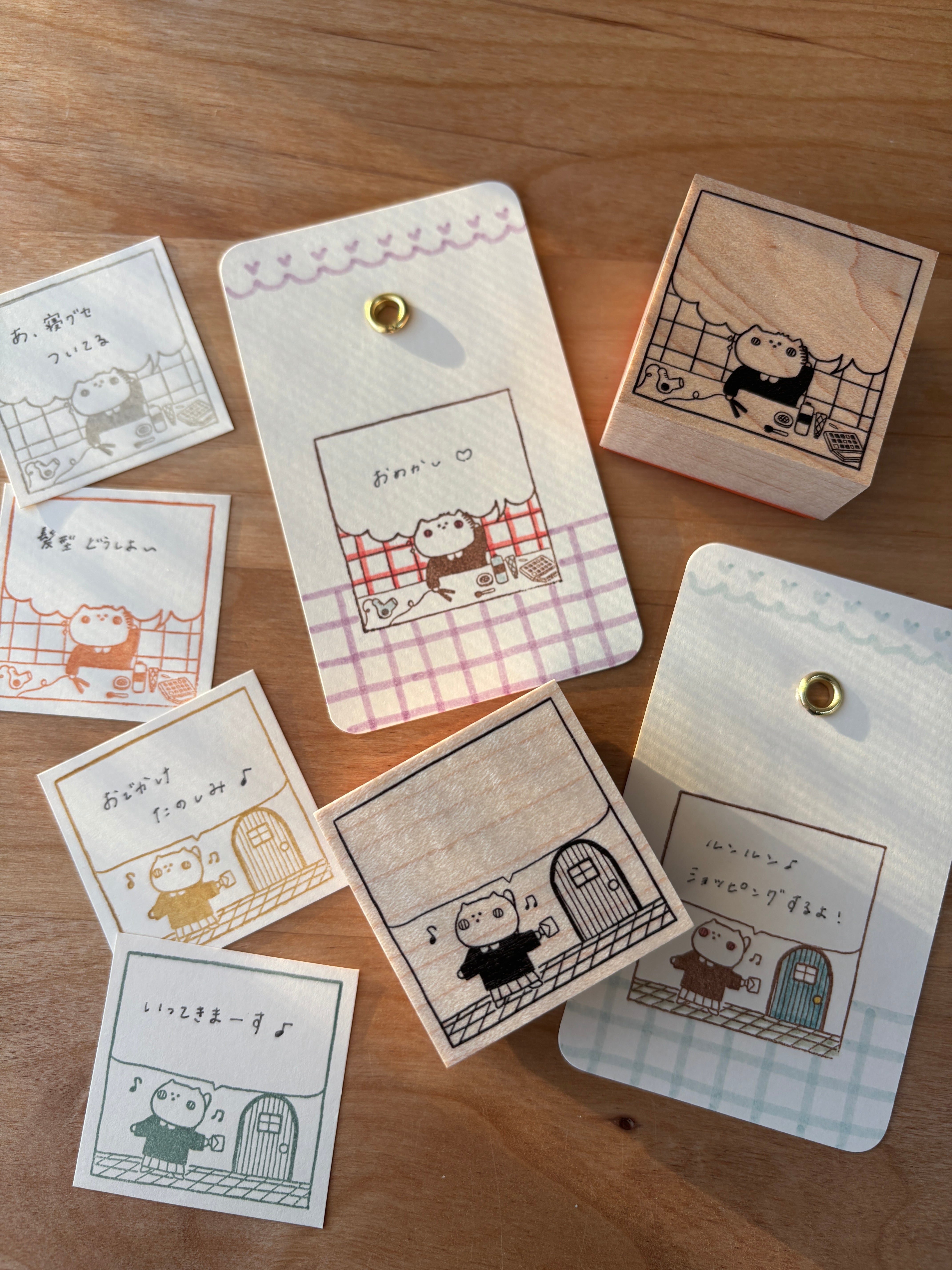 おめかしするねこをハンコにしました!ねぐせがぴょんぴょんしています☺︎