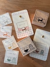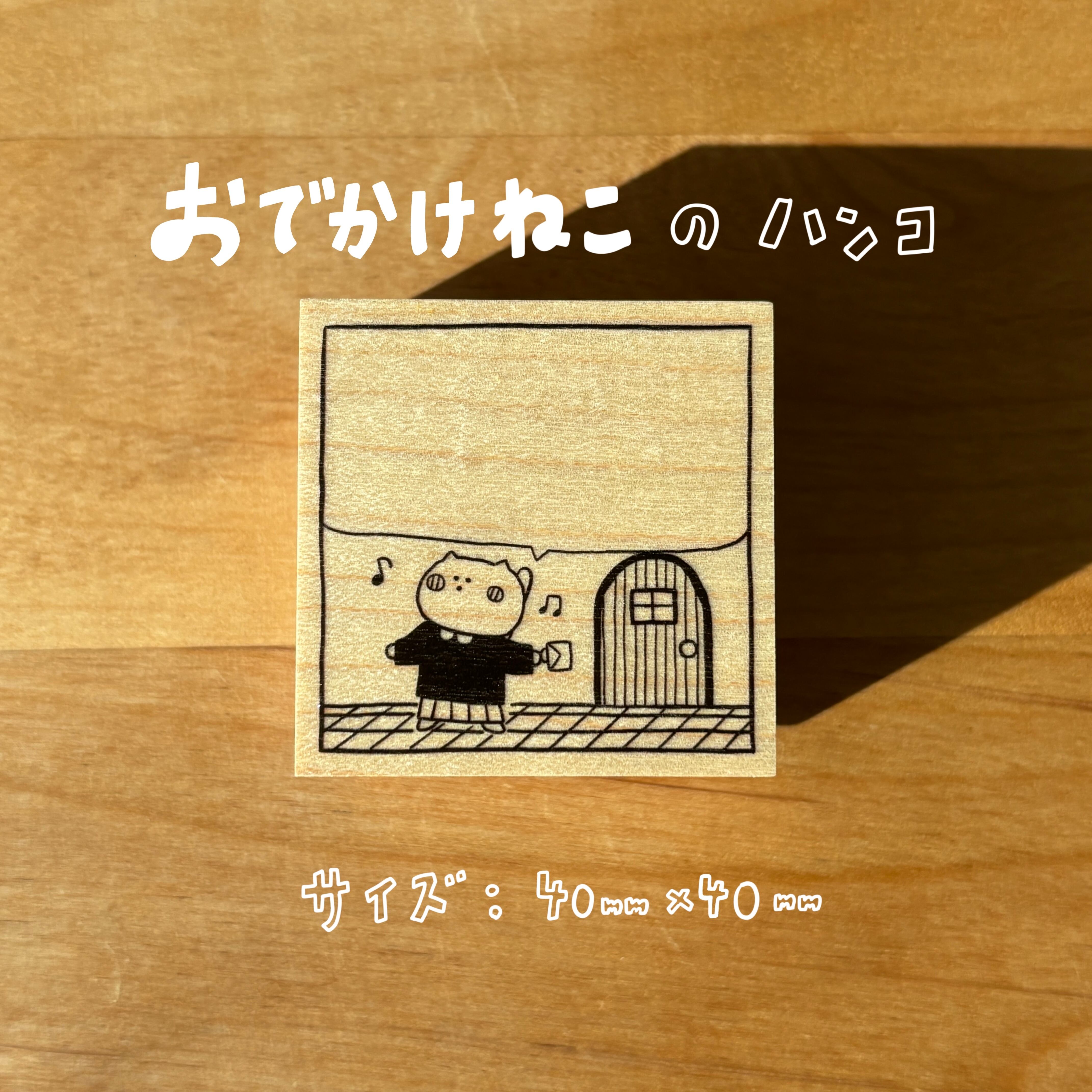 これからおでかけするねこをハンコにしました!楽しみな予定のようで、ルンルンしています♪