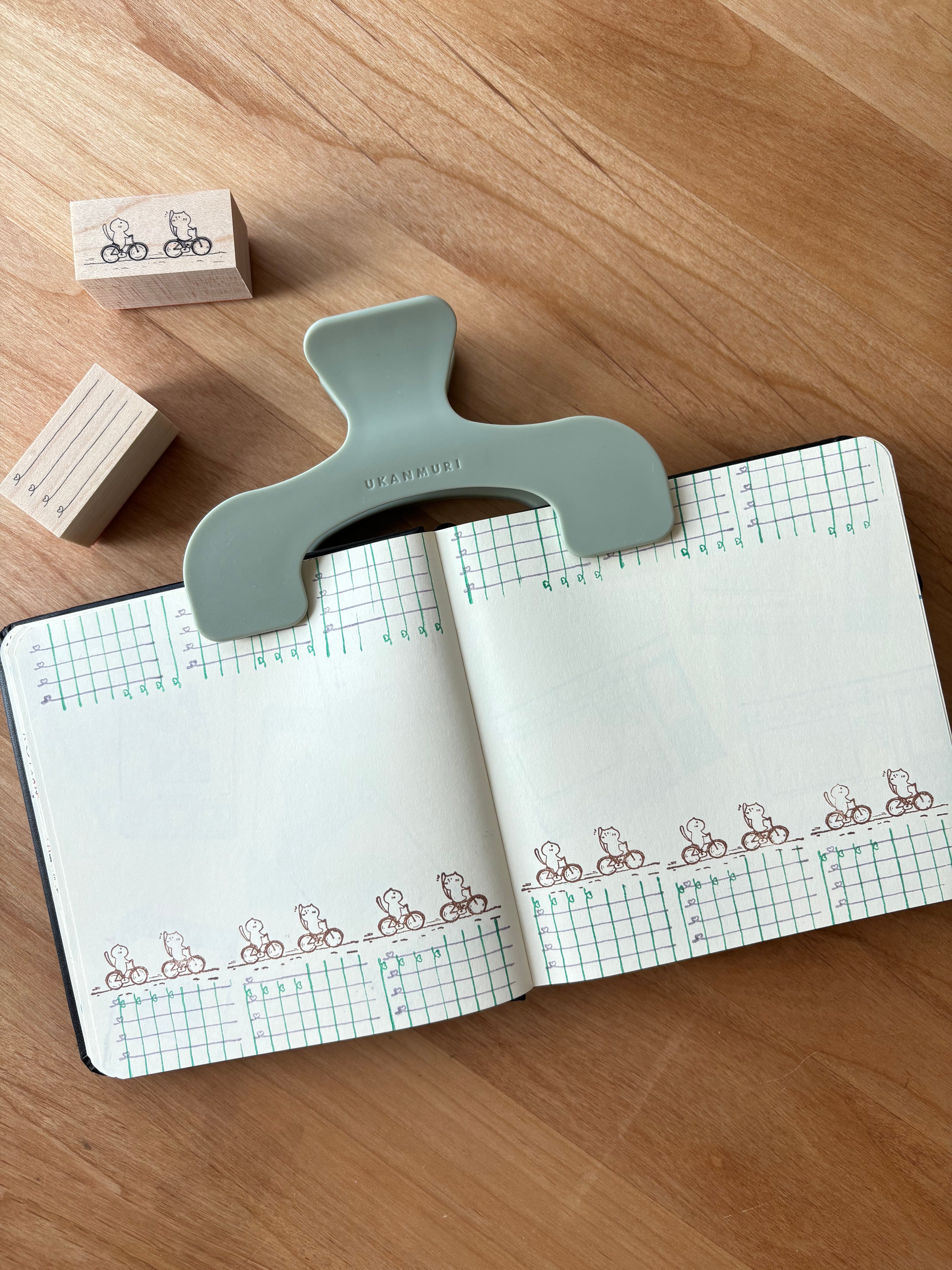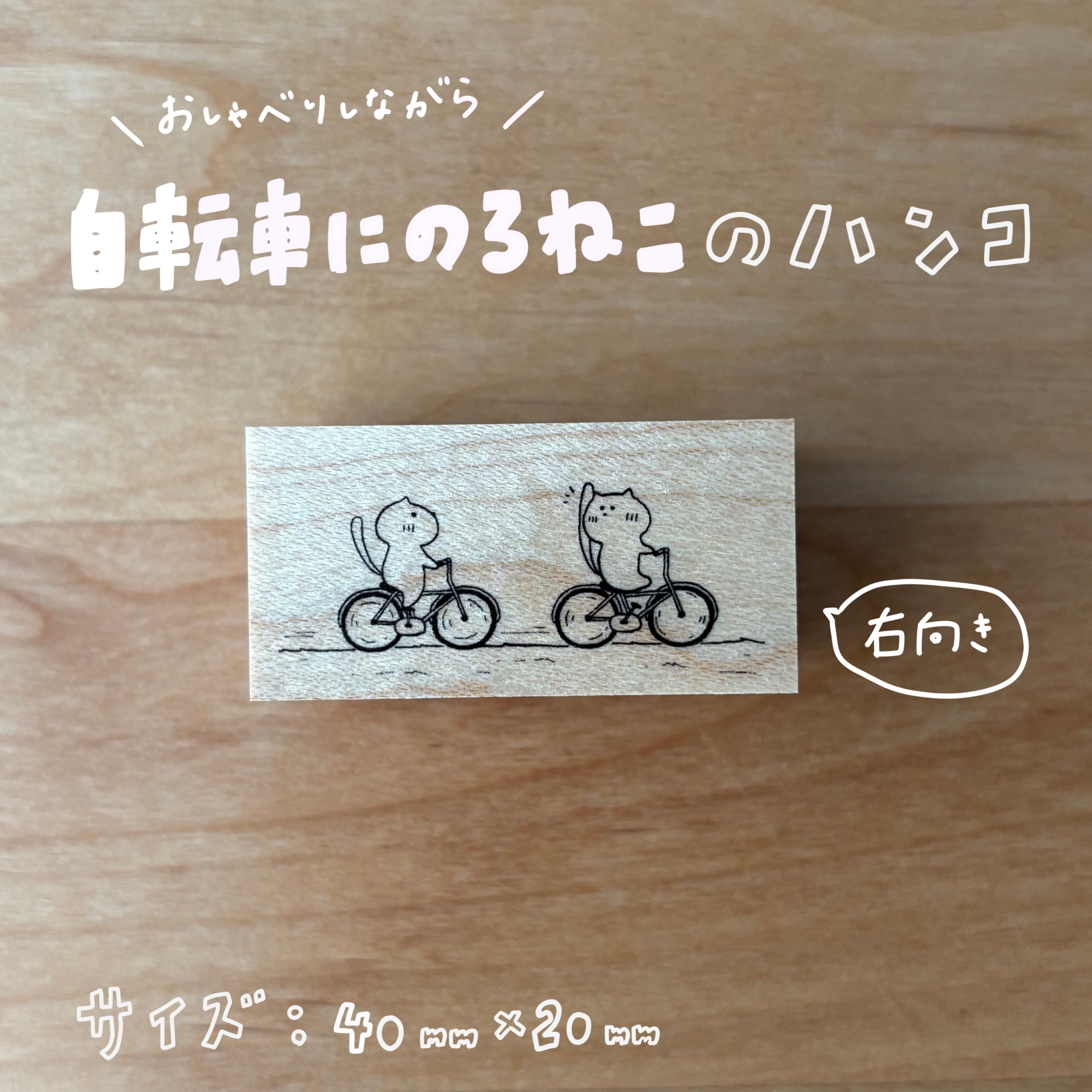 2匹のねこちゃんが仲良くおしゃべりしながら自転車に乗るところをハンコにしました。